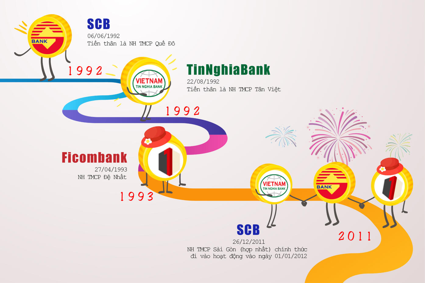 - Ngày 26/12/2011, Thống đốc Ngân hàng Nhà nước cấp giấy phép số 238/GP-NHNN về việc thành lập và hoạt động Ngân hàng TMCP Sài Gòn trên cơ sở hợp nhất tự nguyện 03 ngân hàng: Ngân hàng TMCP Sài Gòn (SCB), Ngân hàng TMCP Việt Nam Tín Nghĩa (TinNghiaBank) và Ngân hàng TMCP Đệ Nhất (Ficombank). Ngân hàng TMCP Sài Gòn (Ngân hàng hợp nhất) chính thức đi vào hoạt động từ ngày 01/01/2012.