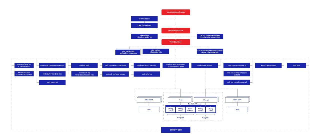 - Hệ thống mạng lưới hoạt động của SCB phân bố tương đối đồng bộ, rộng khắp các khu vực, địa bàn kinh tế trọng điểm nhằm đáp ứng nhu cầu phát triển hiện tại cũng như chiến lược dài hạn của Ngân hàng.